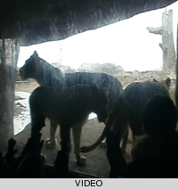 Det var lige 1-3 grader i temperatur, men vi frøs heldigvis slet ikke - vi var godt klædt på og det var ikke blæsende. Her i påsken havde man muligheden for at veksle sin billet til et sæsonkort, en af grundene til vi tog afsted - for parken var jo ikke helt åbent endnu, hverken kano'er, kamelridning eller safari var åbent - og en del dyr var ikke ude.