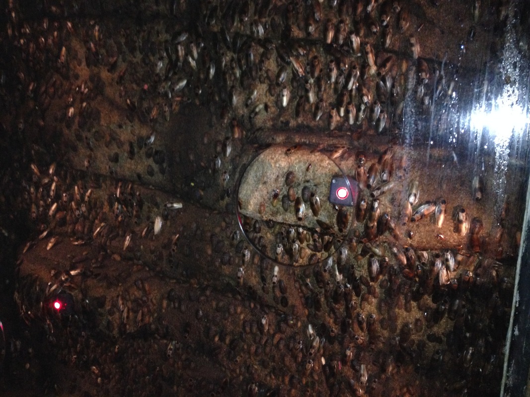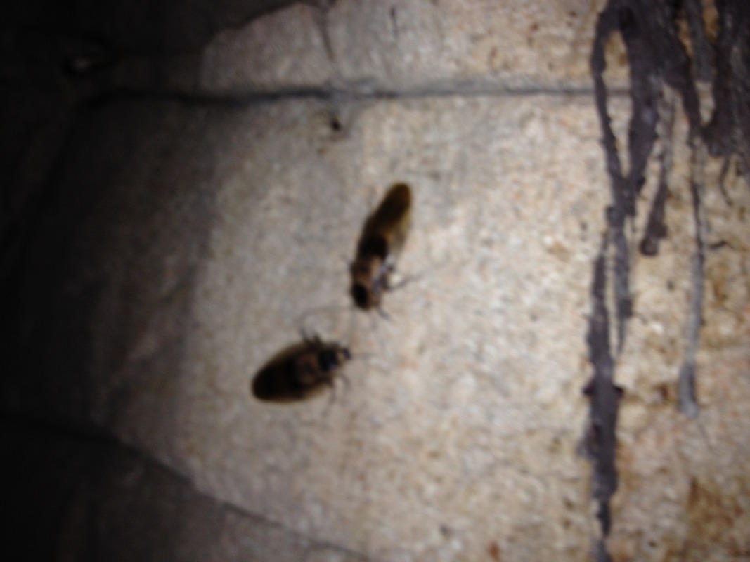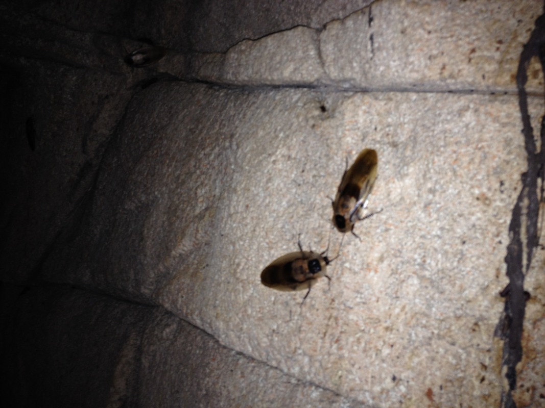 En af de sjove ting var, at når mørket falder på, kommer kakkelakkerne og flagermusene rigtigt frem, der er dælme mange kakkelakker rundt omkring, der pibler frem fra sprækker og kroge - ikke lige til Christophers store begejstring.