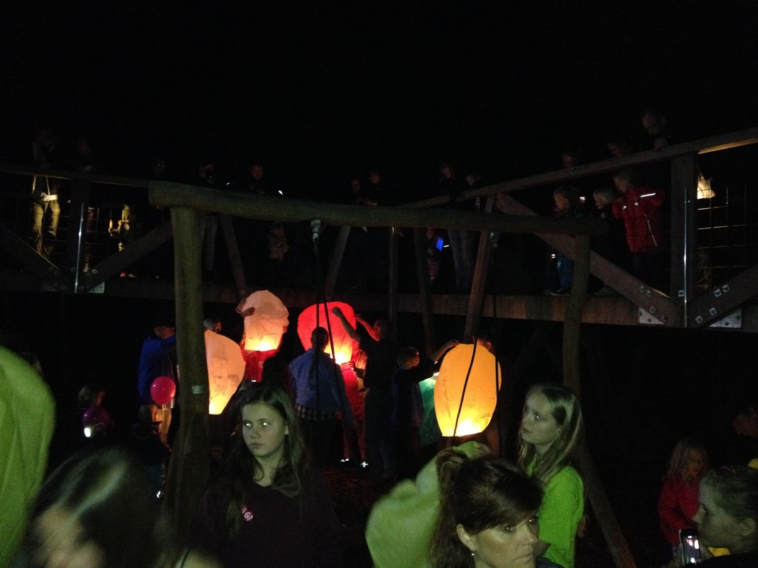 Kl. 20 var der opsendelse af lanterner man kunne købe, dette var dog lidt af et show pga. blæst og mange forhindringer på vej op, en del endte i træerne.
