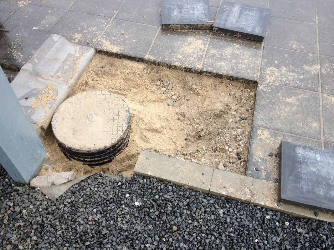 Så kom SP Jensen og forhøjede vores vandbrønd - desværre gik det lidt ud over vores fine kantsætning...