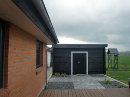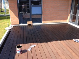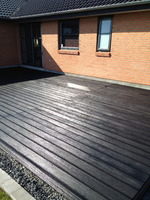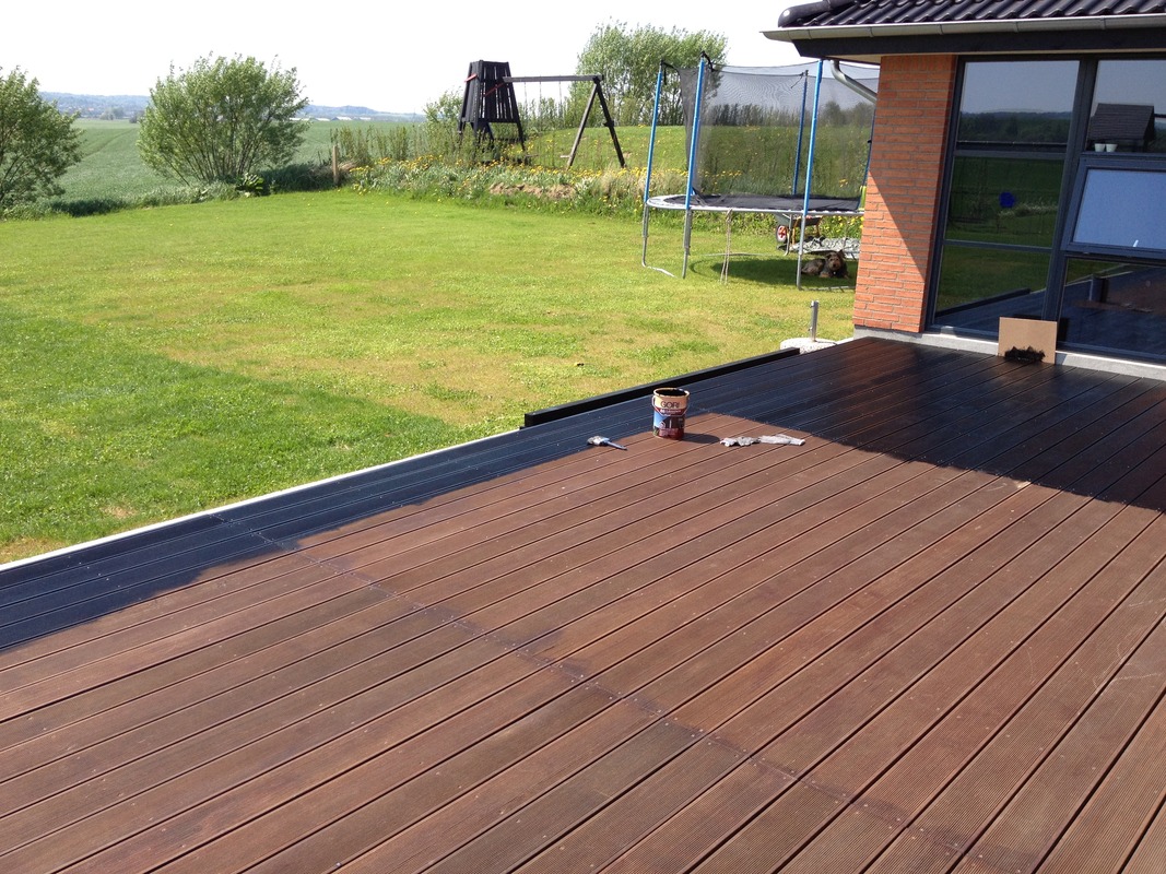 Lørdag formiddag gik vi igang med at male terrassen sort, det var hårdt og afsindigt varmt - hvilken også påvirkede forbruget af mailing; så kl. ca 14 måtte jeg en tur i Jem og Fix for at hente 5 Liter GORI 88 mere...