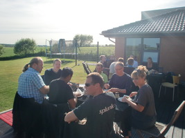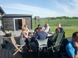 Så det blev faktisk en solrig eftermiddag hvor vi kunne sidde på terassen, og det er altså bare hyggeligere end at klemme 16 mennesker inde i alrummet. Der var heller ikke så mange der var kørende, så der gik få sodavand i år, men en masse Mokai'er