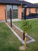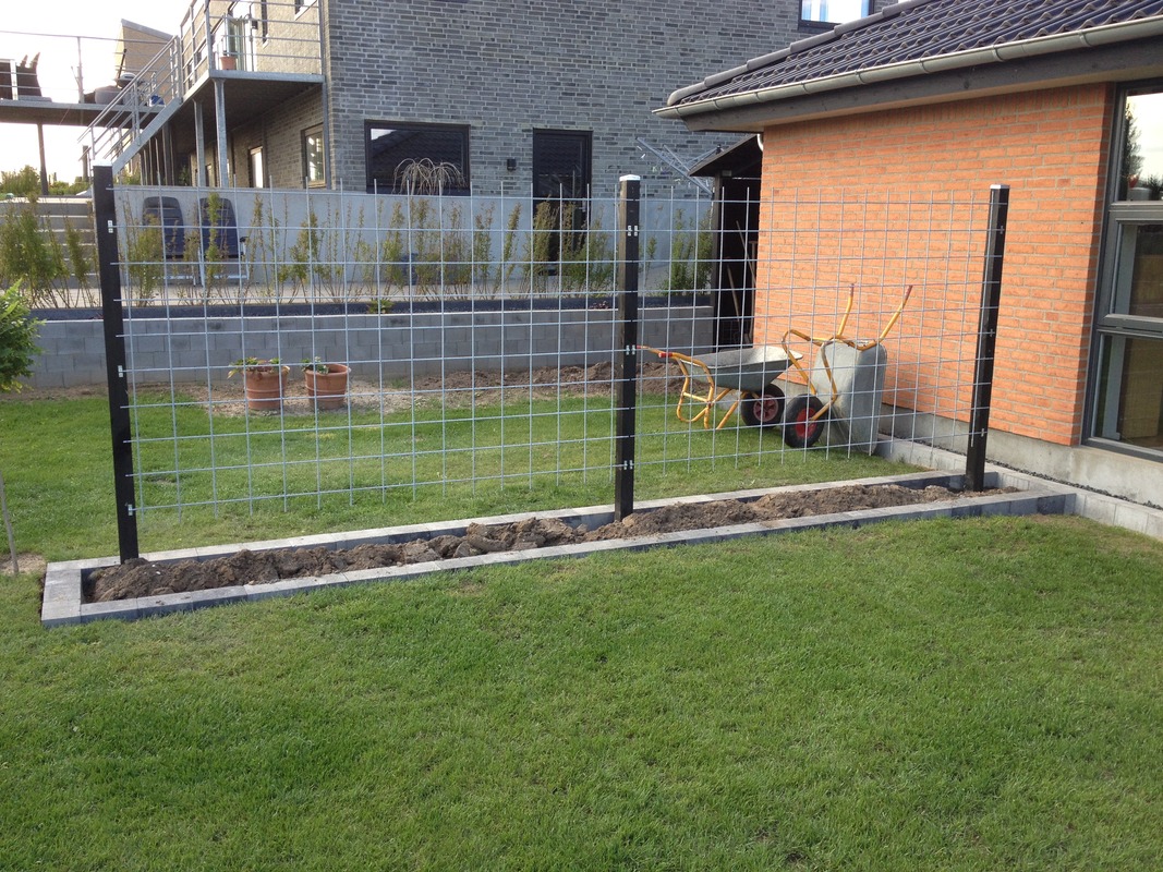 Iaften blev vi færdige med resten af skrænten - og det ser sgu meget godt ud; ærgeligt at vores stolper har flyttet sig under jordpresset (1 meter ned og beton i hullet var altså ikke nok); men det er næsten umuligt at fixe nu..