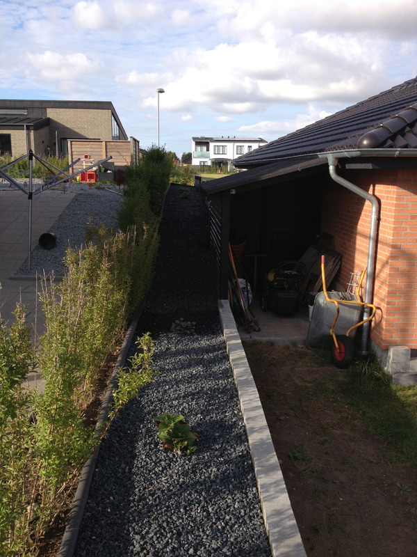 Og Anette har købt underlag, så skal der bare bestilles granit, så er det tæt på. Jeg fik eftermiddagen og lidt aften til at gå med at sætte flere kantsten.